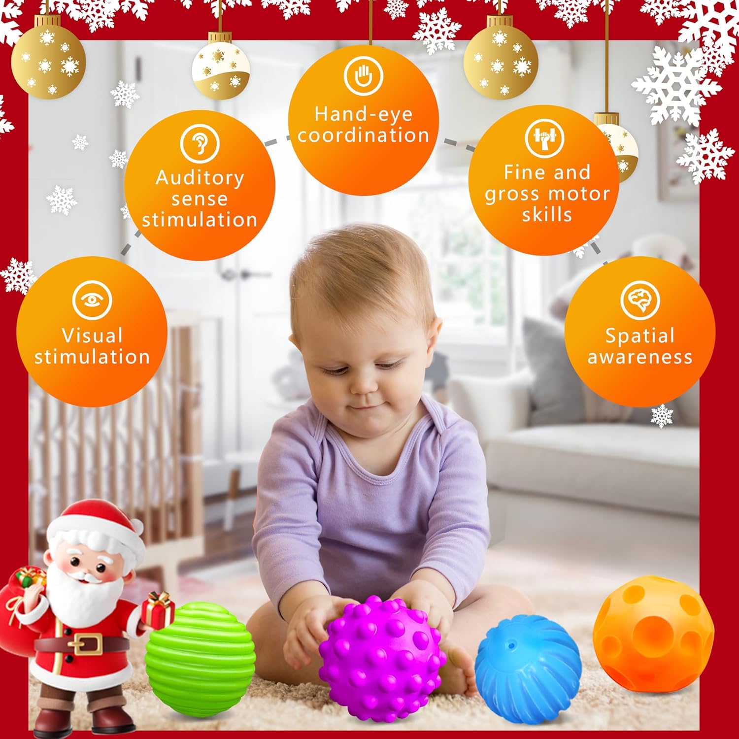 【SAFE, SOFT BABY TOY SET】This set includes 6 sensory balls and a high-quality baby rattle, crafted from premium, non-toxic materials. Designed with safety and comfort in mind, the toddler balls are soft, lightweight, and feature smooth, rounded edges, ensuring no harm to little hands. Fully compliant with toy safety standards, these toys are durable, sturdy, and ideal for curious babies to explore through touch and play. Perfect for infants 3 months and up, suitable for both boys and girls.