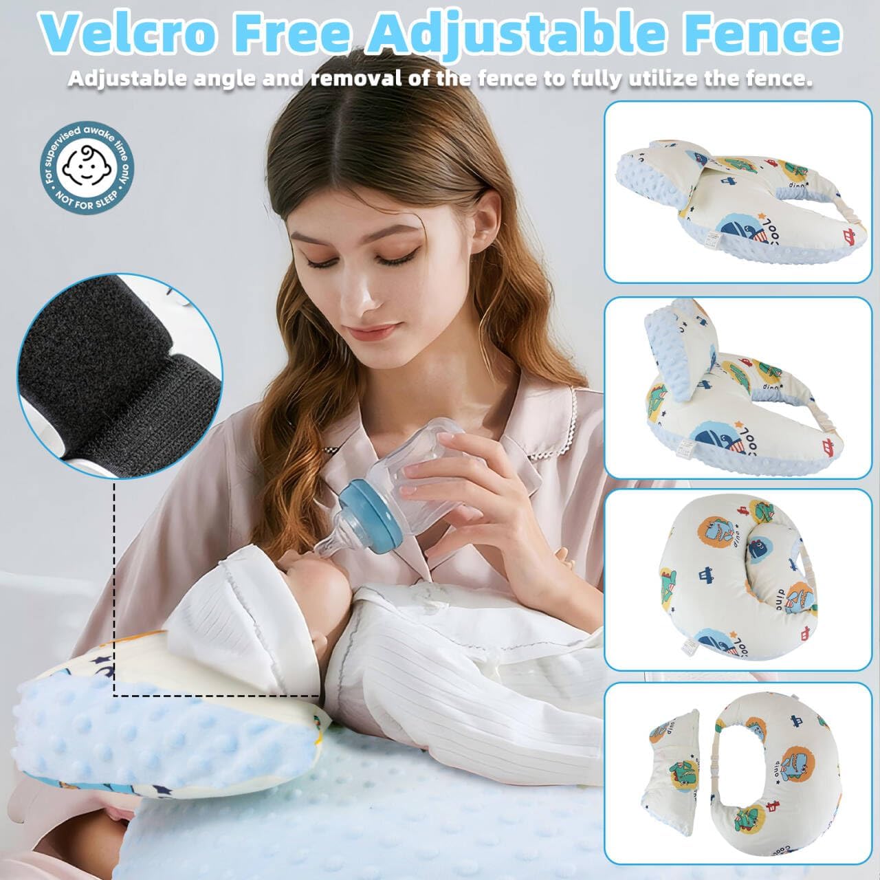 • 【Multi-functional Nursing Pillow】The soft filling also enables more ways to use the pillow under adult supervision, (0+ months) feeding, propping after 3 months, tummy time after 6 months, and sitting after 9 months. Only when baby is awake, not for sleeping.