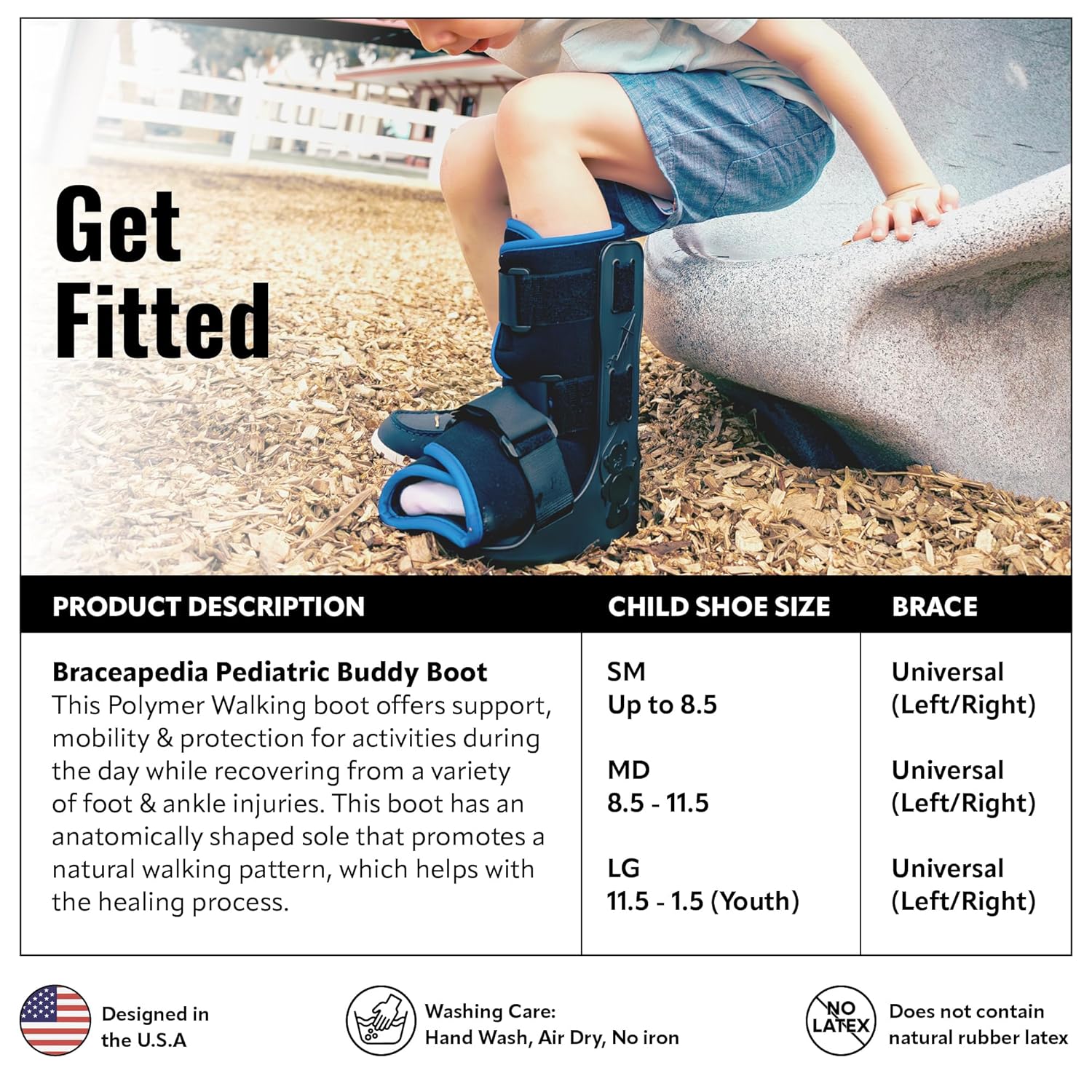 Specification: Pediatric Buddy Boot, Kids Medical Grade Left/Right Foot & Ankle Support Brace, Sprain & Injury Recovery Walker Boots, Large, Black