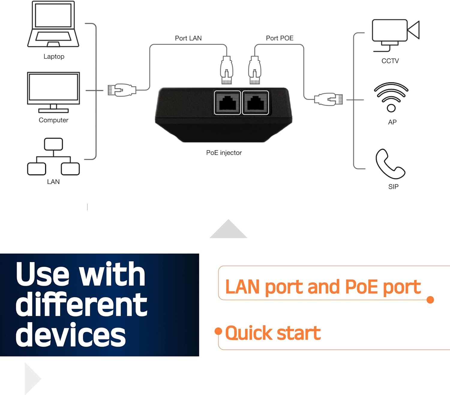 • 【Safety】 Built-in load detector with automatic shutdown function: prevents potential damage and energy waste by turning off the mobile PoE injector when no devices are connected