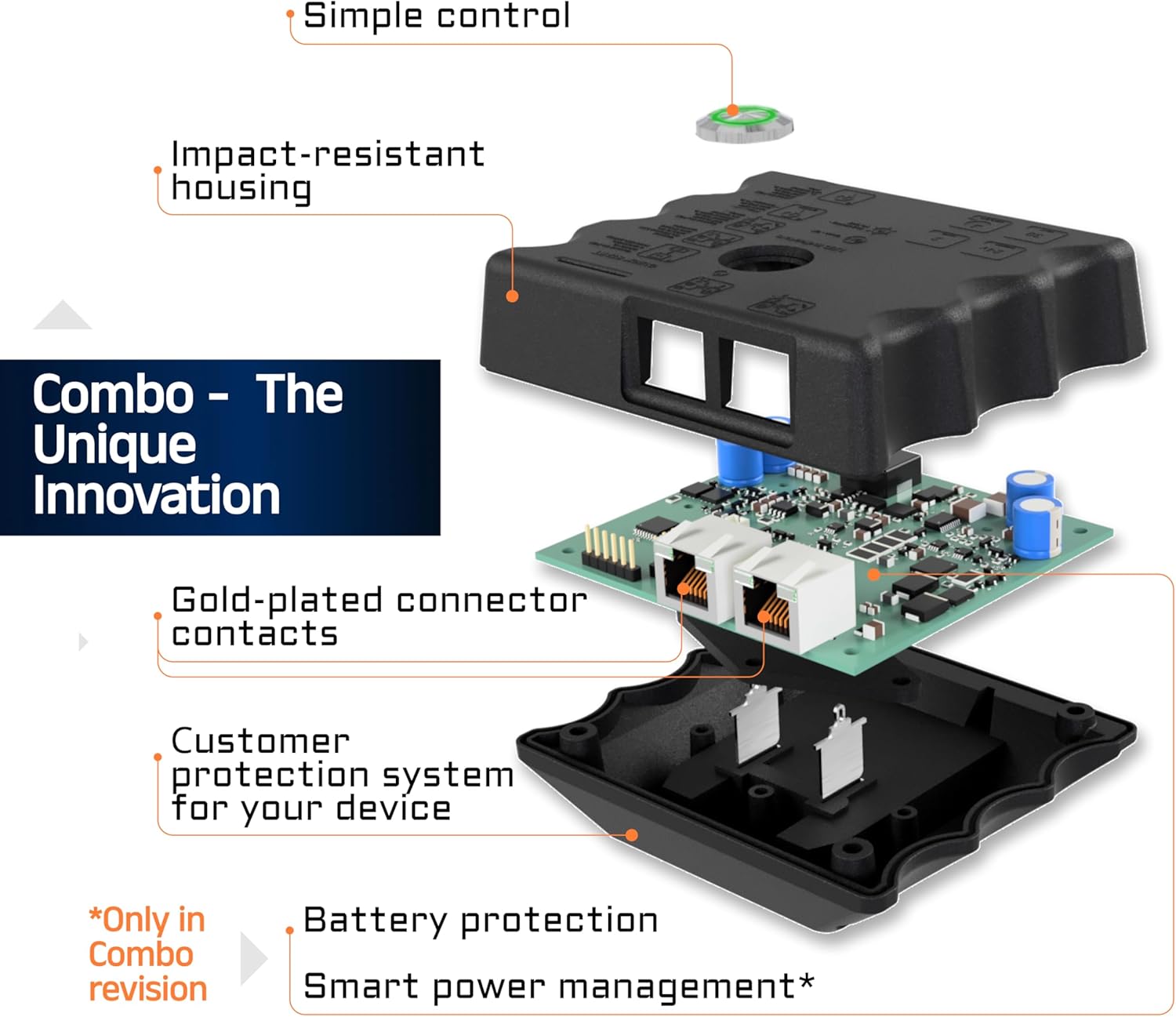 • 【Versatility】Compatible with any PoE+ powered Ethernet devices thanks to a unique COMBO algorithm. Power output: 25V/50V DC (25W-50W). Supports Passive PoE 24V DC (25W) and 50V DC (50W), as well as IEEE 802.3af (15.4W), 802.3at (30W), and IEEE 802.3bt Type 3 (up to 50W) PoE. The supported PD voltage range is 24-30V and 36-57V. Connect our portable COMBO (active and passive) battery powered PoE injector to a variety of devices, such as mobile or fixed subscriber antennas, backbone (PtP) antennas, WiFi access points, “PoE in” switches, “PoE in” routers, and many other powered devices