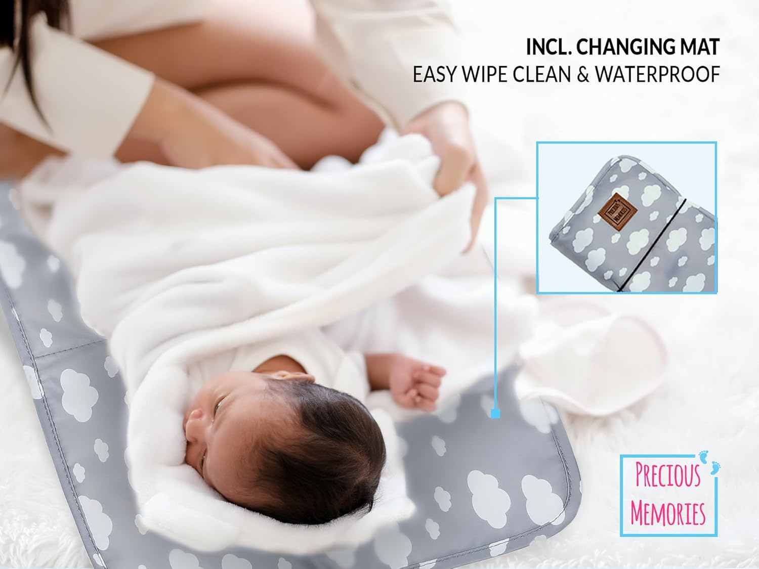 INCL. CHANGING MAT – Change diapers everywhere! Our diaper bag features a water-resistant changing mat – perfect when you are on the go and must change your baby’s diaper on a soft, reliable surface.