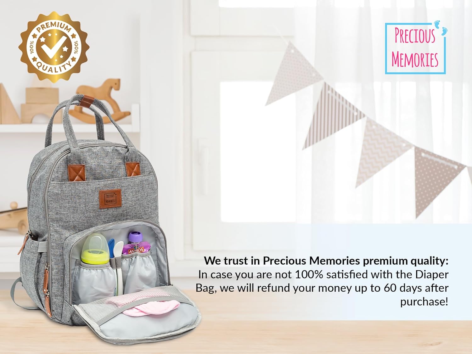 LARGE CAPACITY – The spacious diaper-changing bag from Precious Memories offers you & your little one plenty of pockets to store the most important baby items – a must-have for every trip with the stroller!
