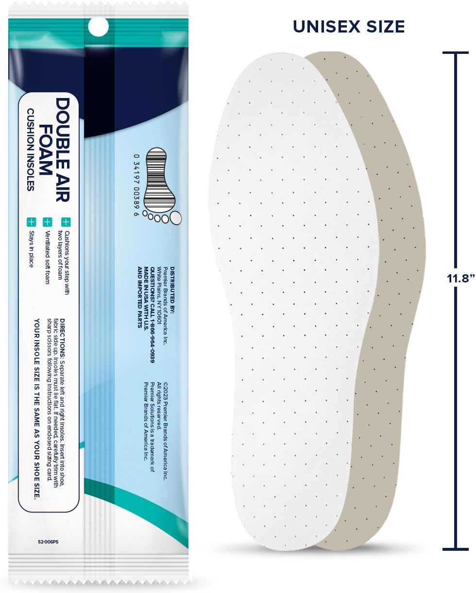 Premier Solutions™ Double Air Foam Insoles, Unisex, Cut to Size, 6 Count