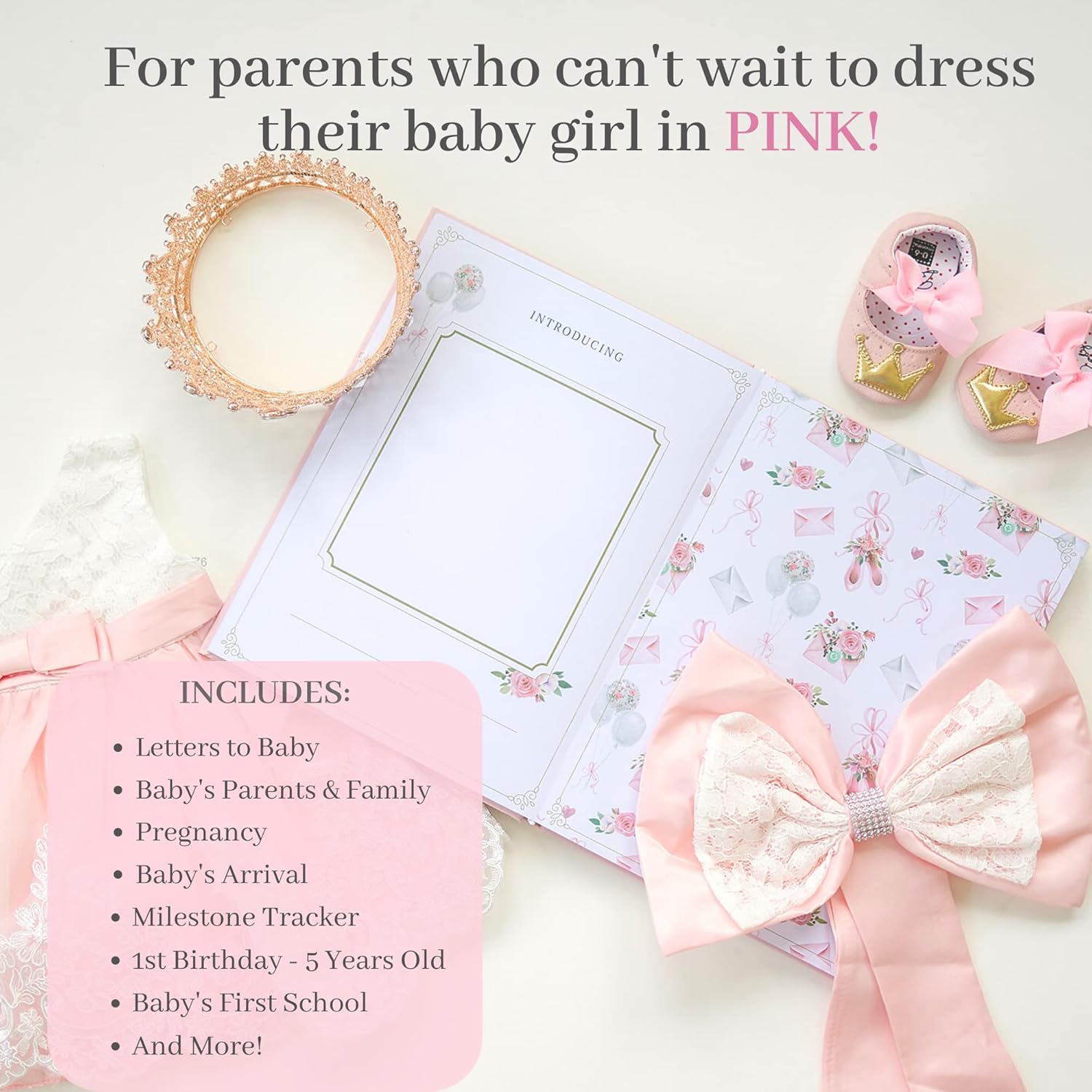 Princess Baby Memory Book Kit. Baby Journal Scrapbook with Keepsake Box, Pouches and Boho Milestone Stickers. Girl Baby Album First Year to 5. Princess Baby Gift for Girl or Boy