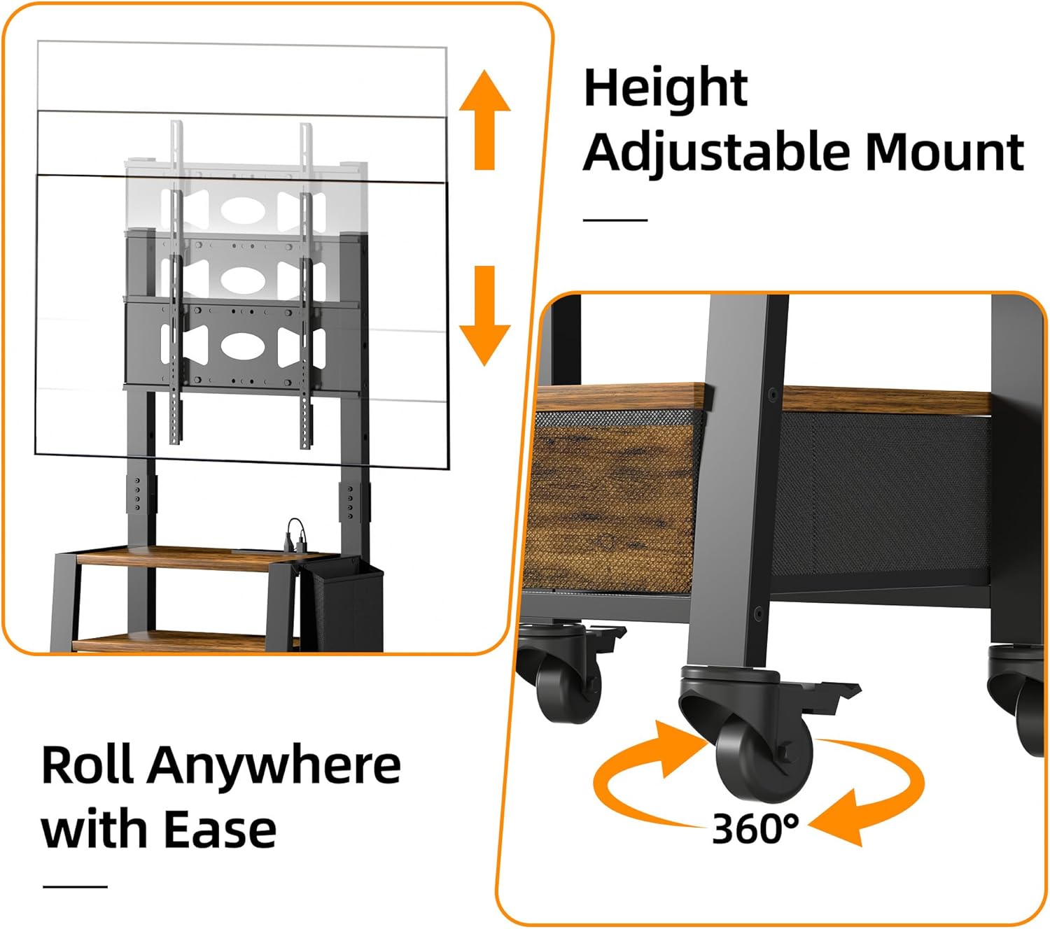 Be the first to review “Rolling TV Stand with Mount and Fabric Drawer for 32-75″ TV – Entertainment Center with Charging Station and Industrial TV Console Table for Living Room, Bedroom – Rustic Brown” Cancel reply
