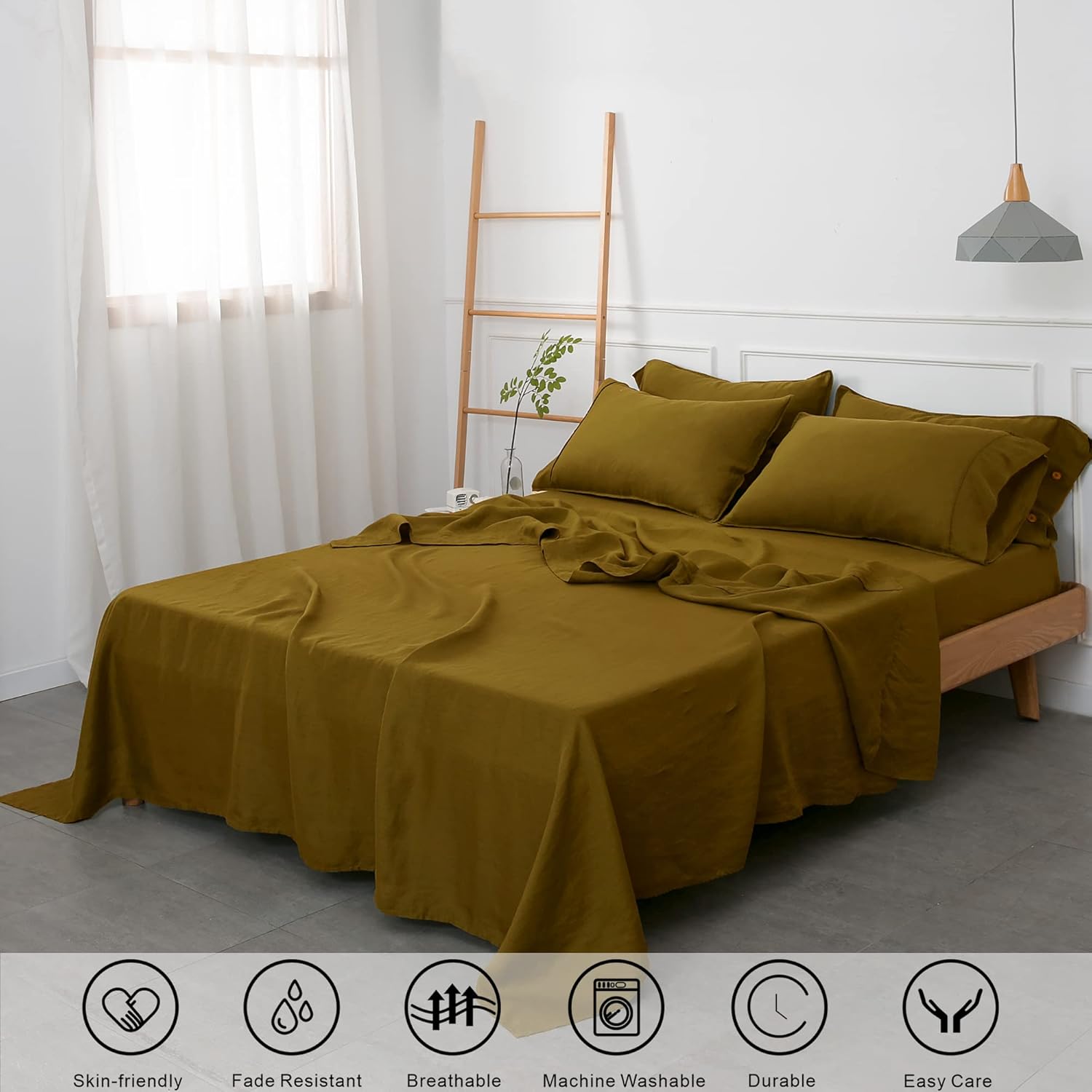 Specification: S VICTORY SYMBOL Pure Linen Sheet Sets,Stone Washed Natural French Flax 4Pcs(2 Pillowcases,1 Fitted Sheet,1 Flat Sheet) California King Size Bedding,Ecru Olive