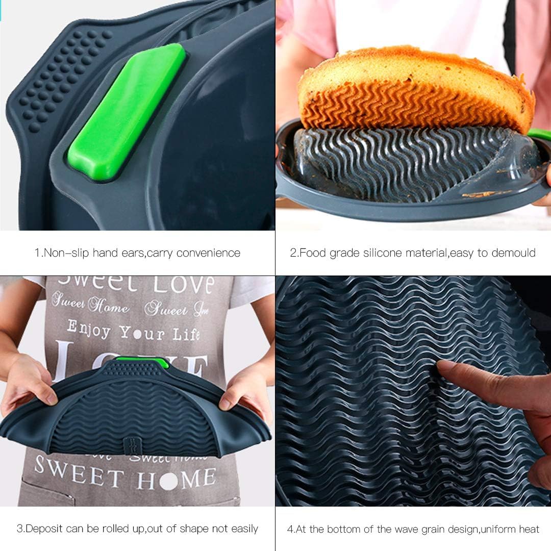• FOOD GRADE SILICONE: The baking silicone molds are made of food grade silicone, and BPA free. The silicon baking pans set have nonslip ears and very soft material, you can easily carry them without silippery and roll up for convenient storage.