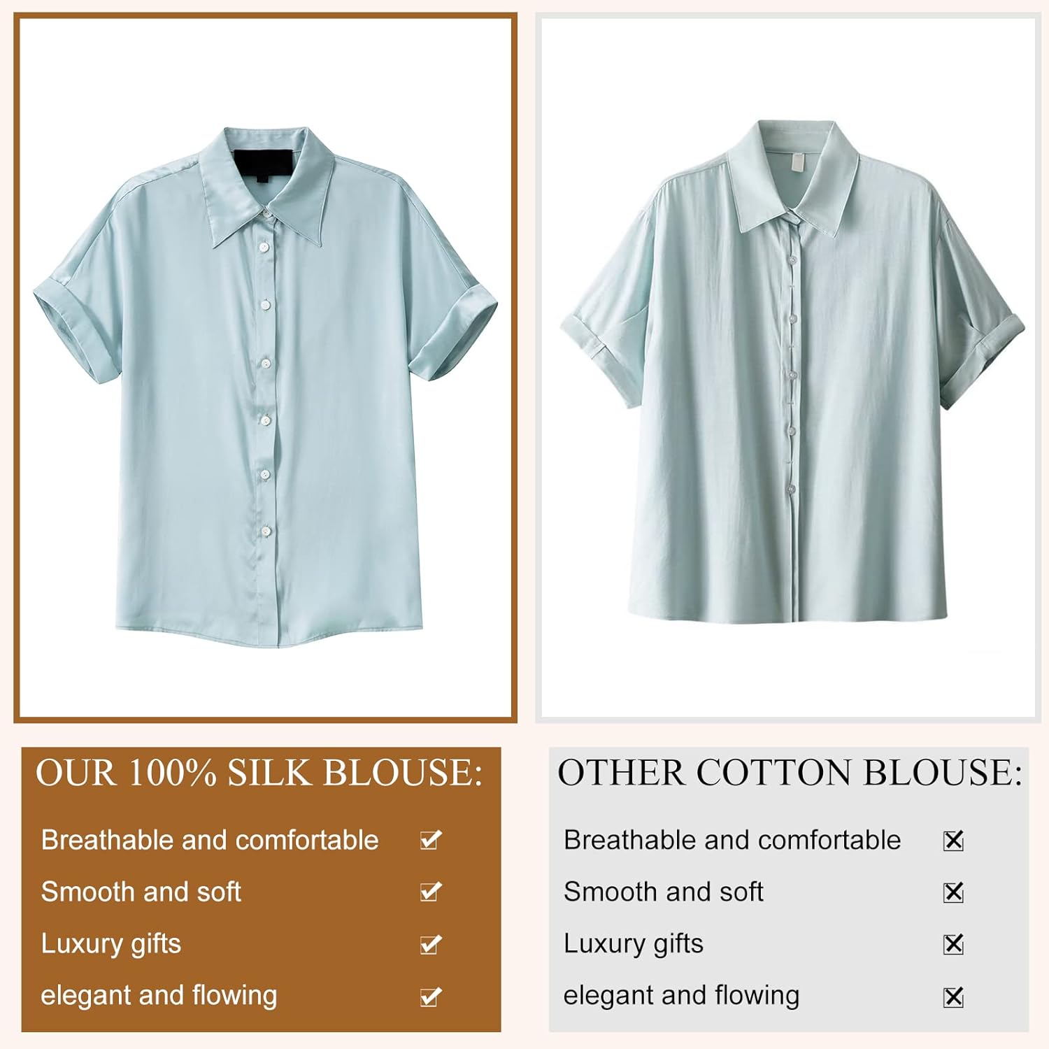 Specification: Silk Blouse for Women Button Down Shirts: Women’s Short Sleeve Elegant Shirt 100% Pure Silk Casual Tops Summer Luxury Blouses