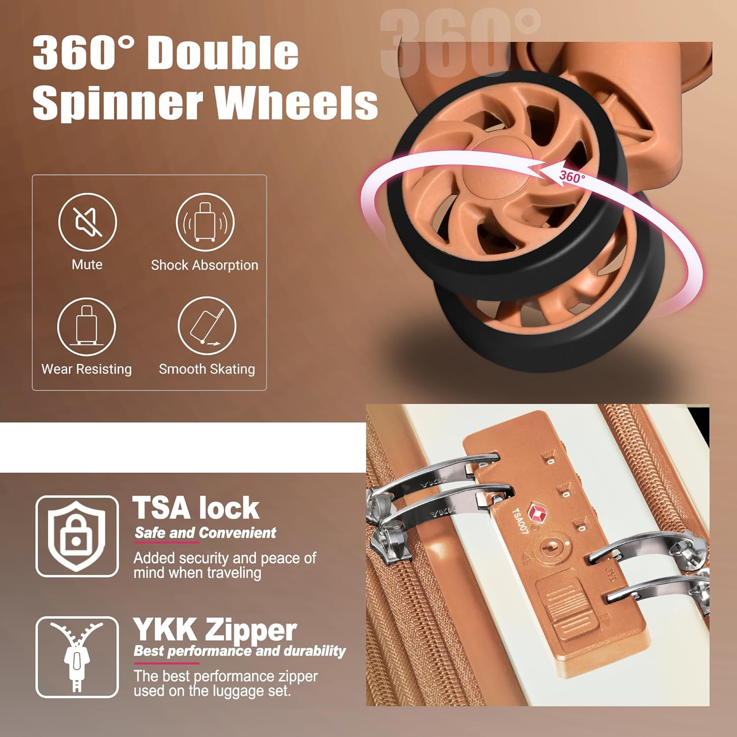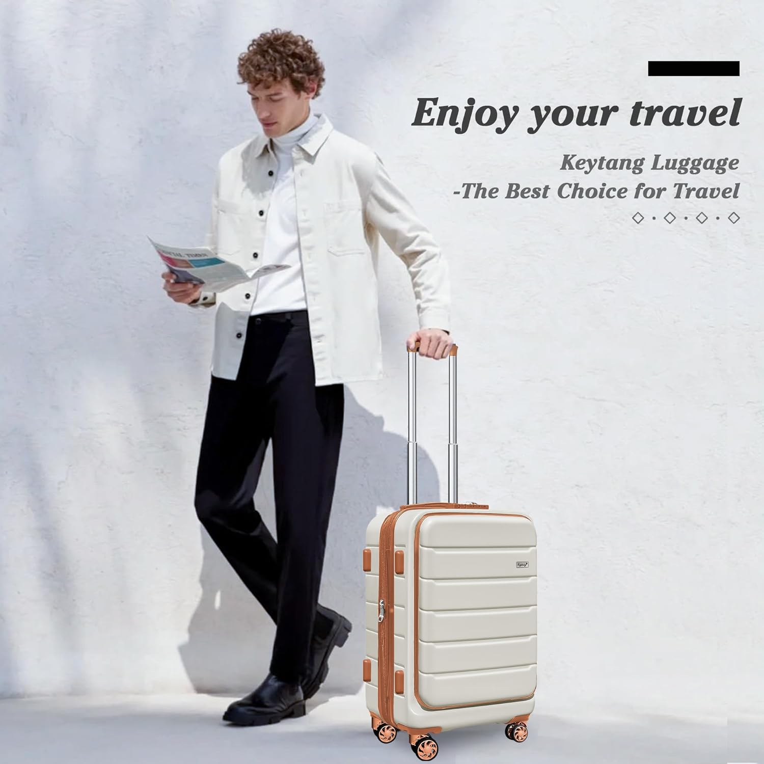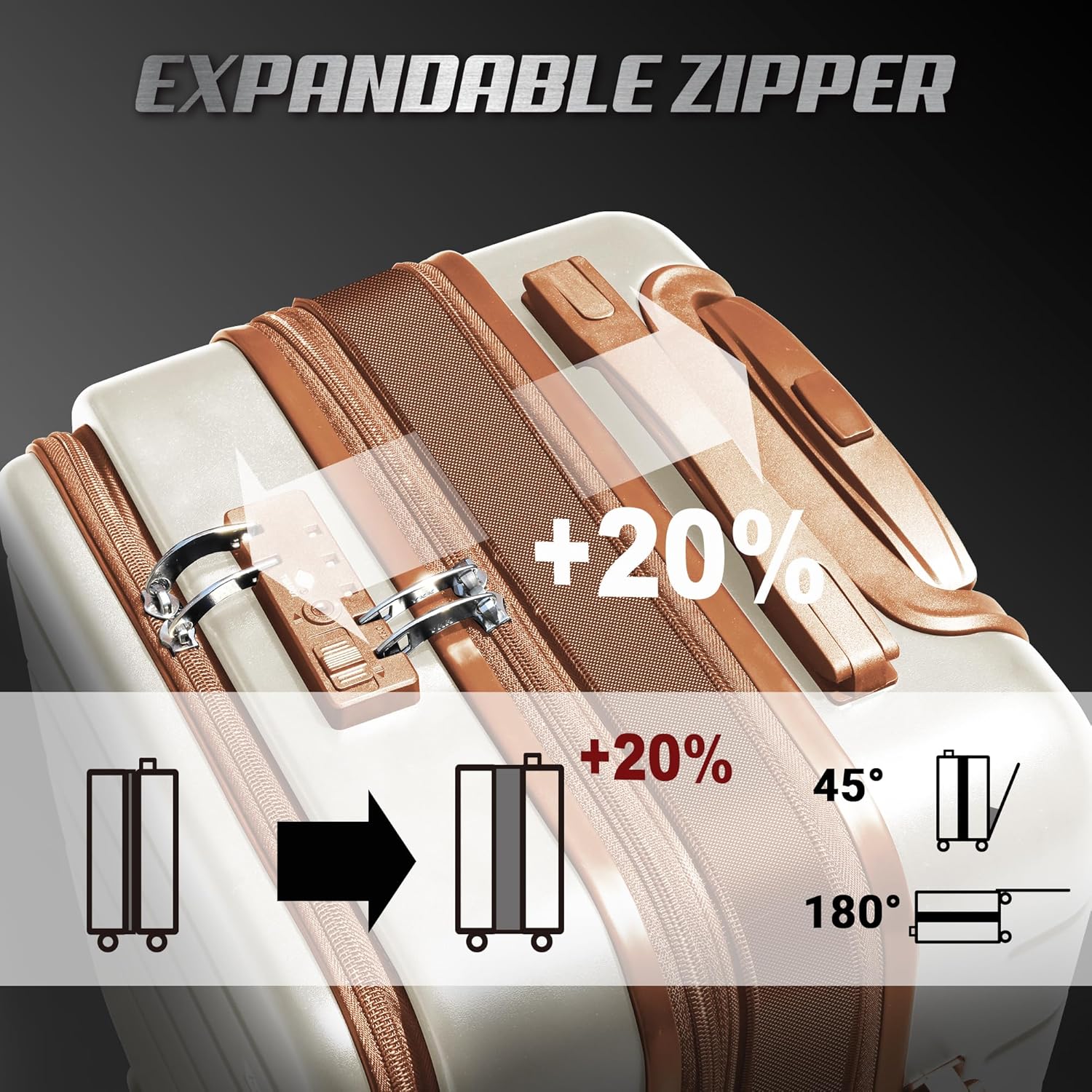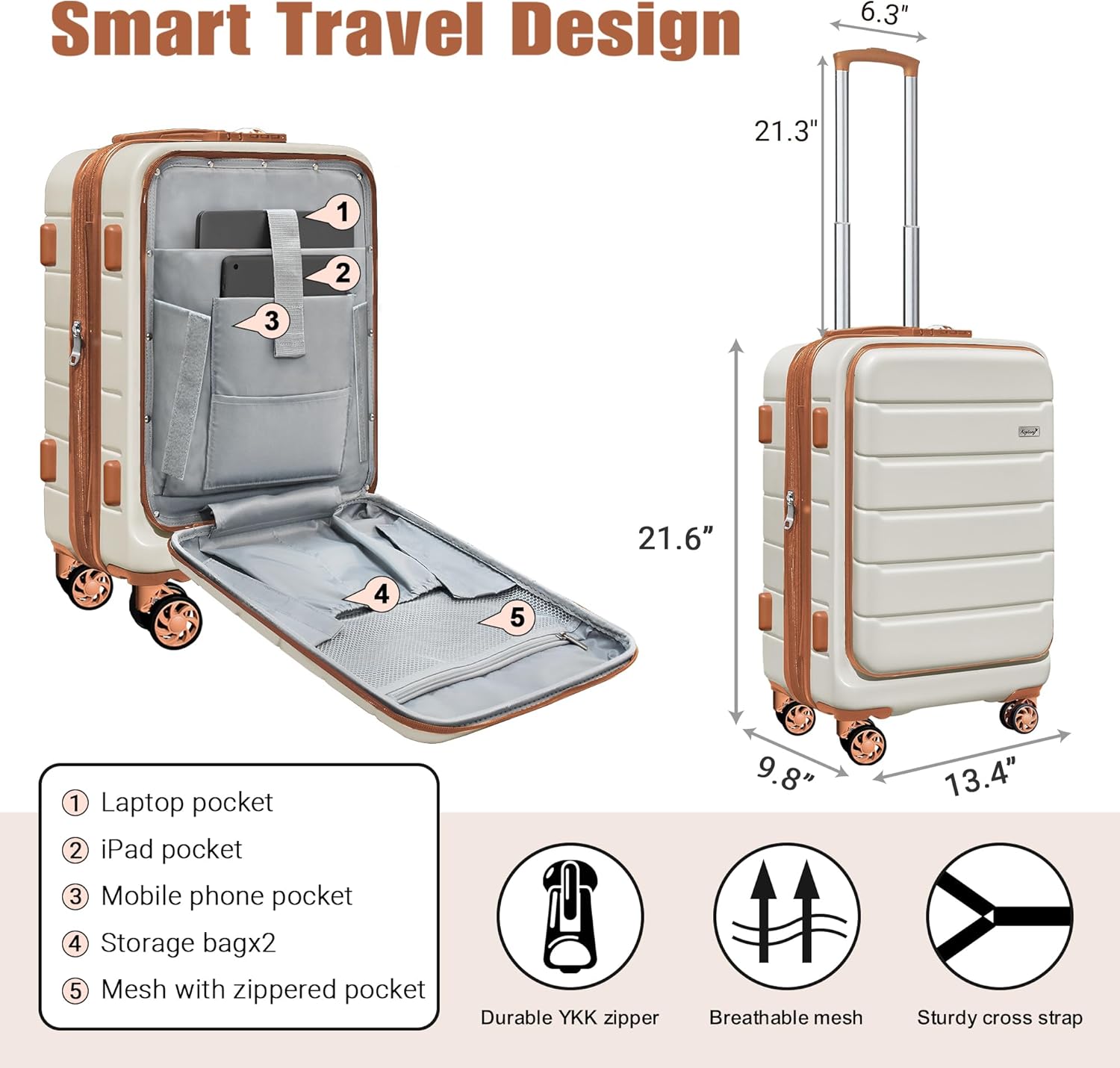 Specification: SmileLine Hardside Expandable Luggage W/Quick Access Front Open Pocket Lightweight Carry-on with Makeup Bag, White-Brown, 3 Piece Set