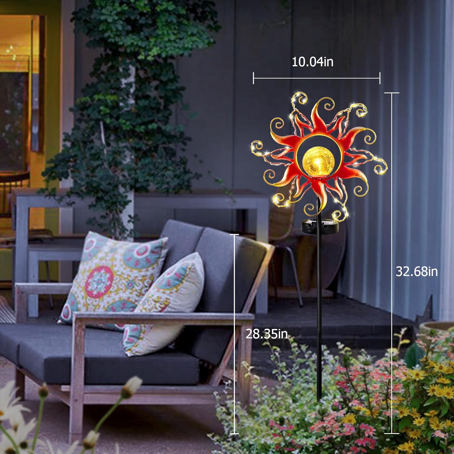 Specification: Solar Garden Lights Sun Outdoor Decor,Glass Globe Solar Sake Lights with Vine String Waterproof,Metal Stake Lights for Lawn Ornaments,Yard Art,Outside,Patio Decorations