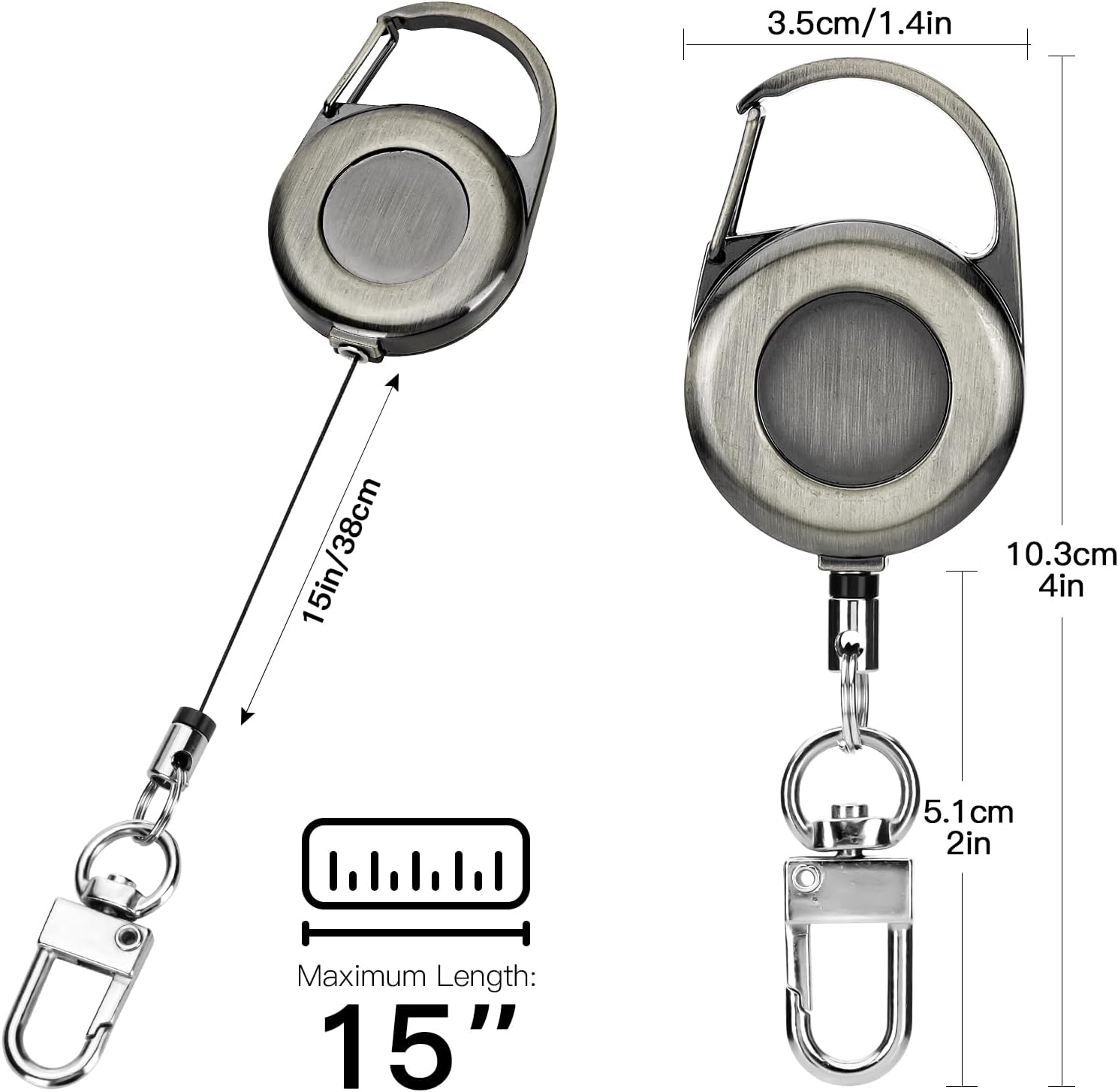 Specification: Soleebee Heavy Duty Retractable Keychain, Metal Carabiner Badge Reel Vintage Key Chain Holder Clip ID Badge Holder with Retractable Cord – Carbon Gray