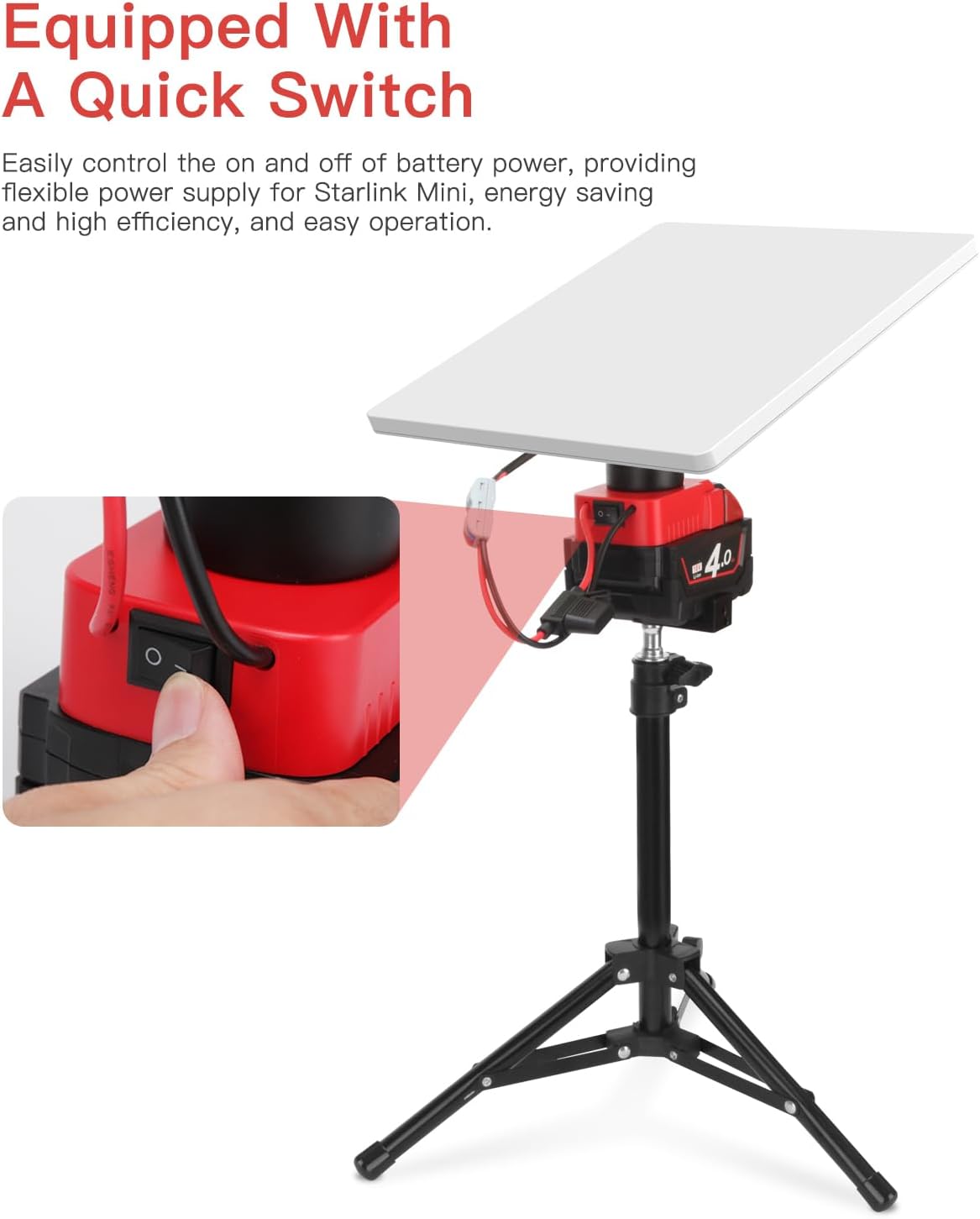Starlink Mini DC Power Cable with Tripod for Milwaukee Battery – Adapter Base Compatible with Milwaukee Batteries – Tripod with 3 Fuses and Clamping Batteries – Starlink Mini Power Adapter