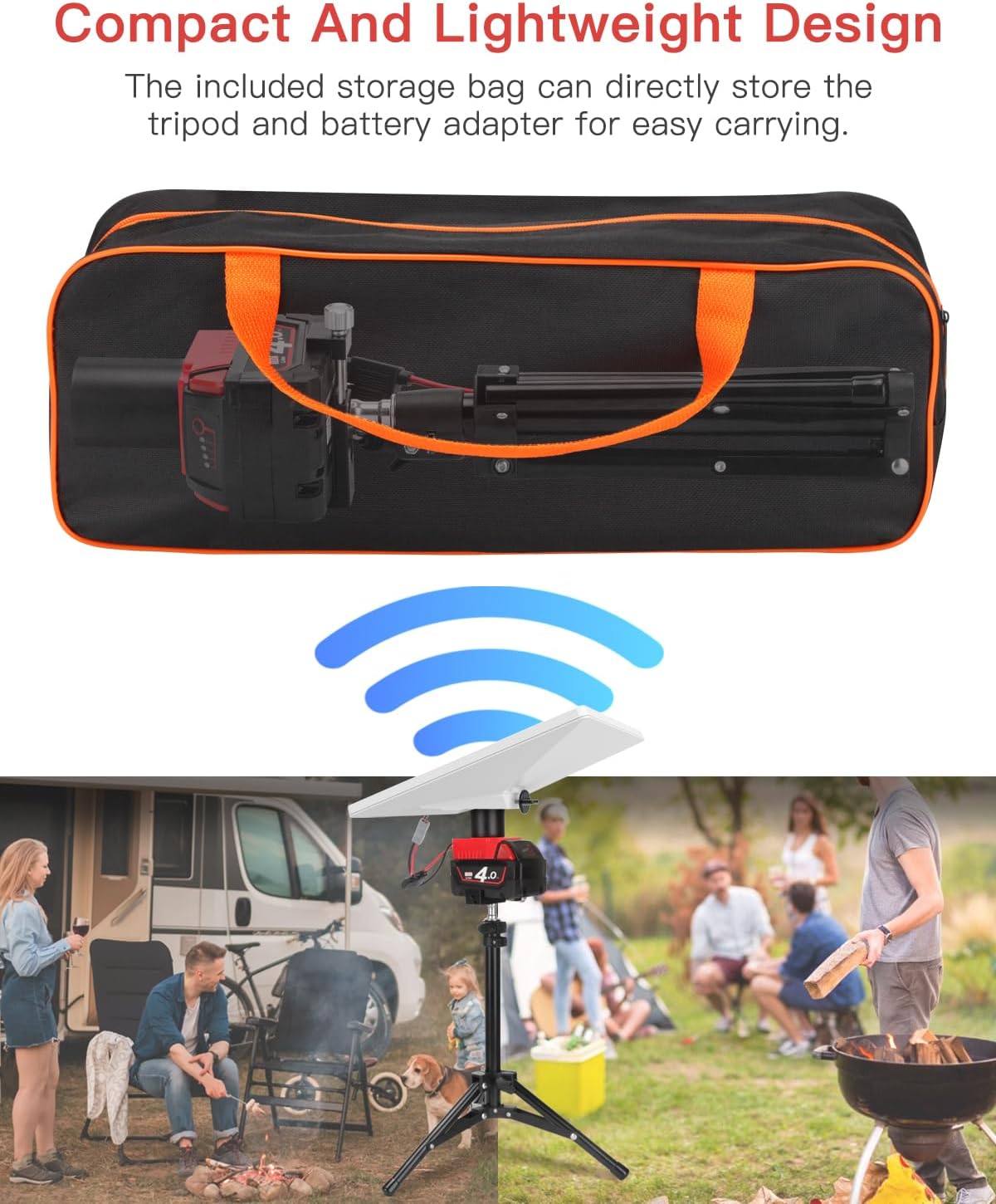 Specification: Starlink Mini DC Power Cable with Tripod for Milwaukee Battery – Adapter Base Compatible with Milwaukee Batteries – Tripod with 3 Fuses and Clamping Batteries – Starlink Mini Power Adapter