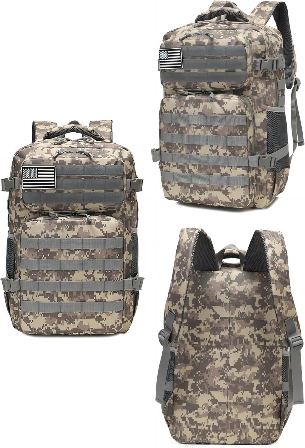 Tactical Backpack for Outdoor Adventures, 20-35L Capacity, Waterproof, Customizable, Black (ACU Camouflage)