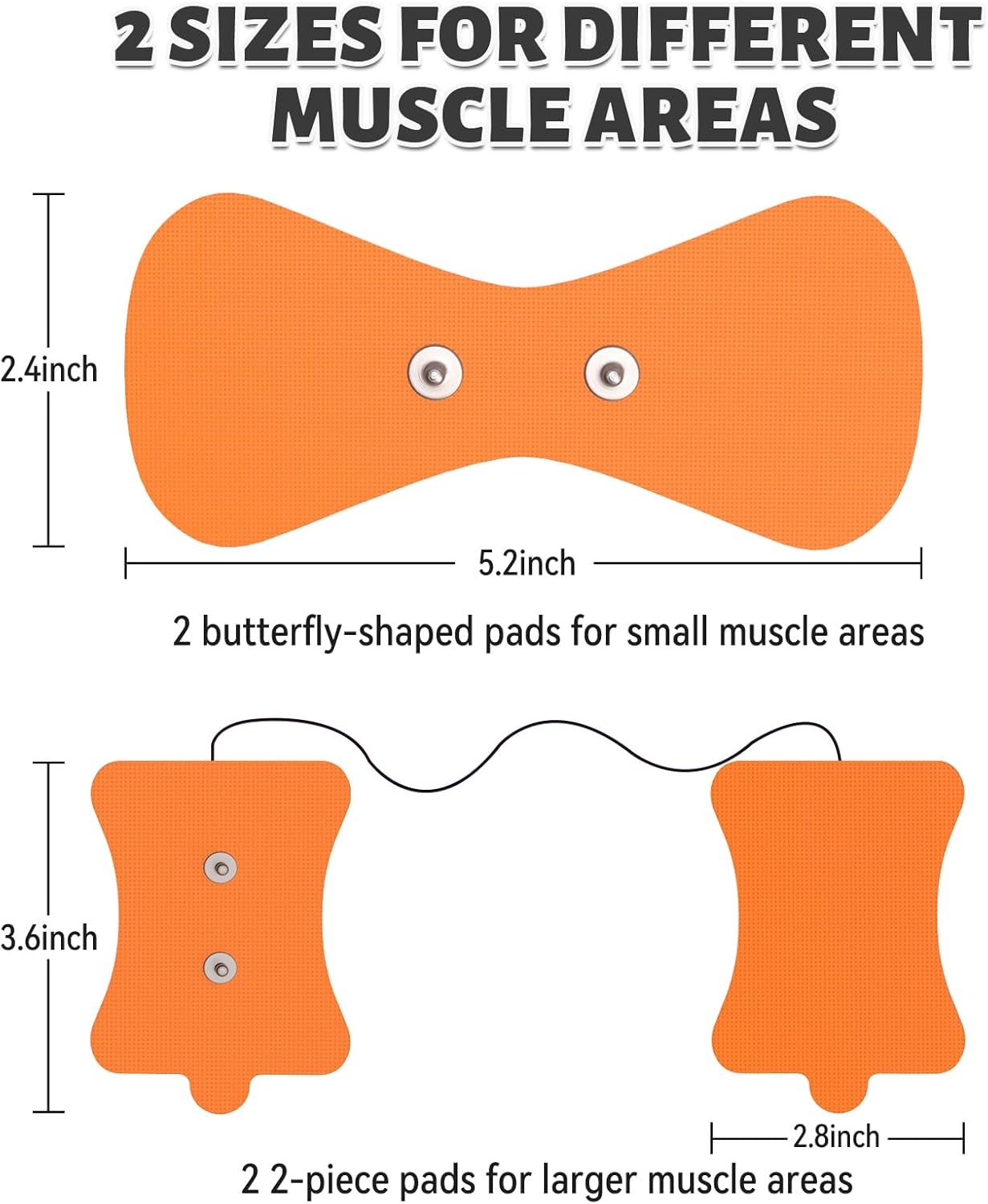 • â—Ź What You Get: Total 4 Pack, including 2 packs of 1-piece butterfly-shaped pad 5.2″ x 2.4″ for small muscle areas and 2 packs of 2-piece pads 3.9″ x 2.8″ for large muscle areas.