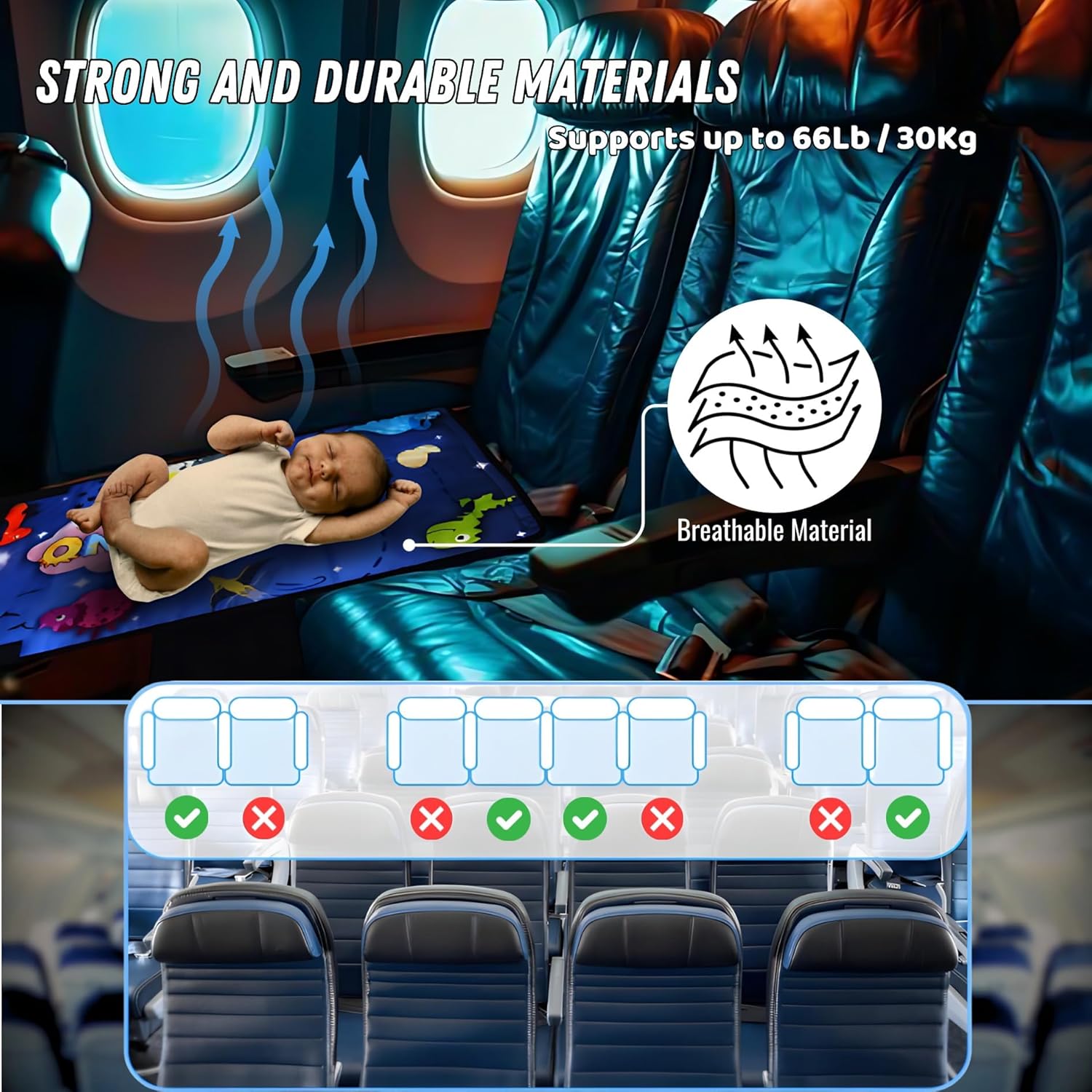 Effortless Install – The adjustable straps of toddler airplane bed make it easily installed in just 3 steps 1 minute (Simply follow the guidelines of our pictures for a proper setup) to secure the bed to the airplane seat. The kids airplane seat extender with quick and quiet installation process can fit any size of airplane seat. Elevate your air flight without disturbing others. Allowing your little one to enjoy the comfort of a children’s hammock anywhere while you’re traveling