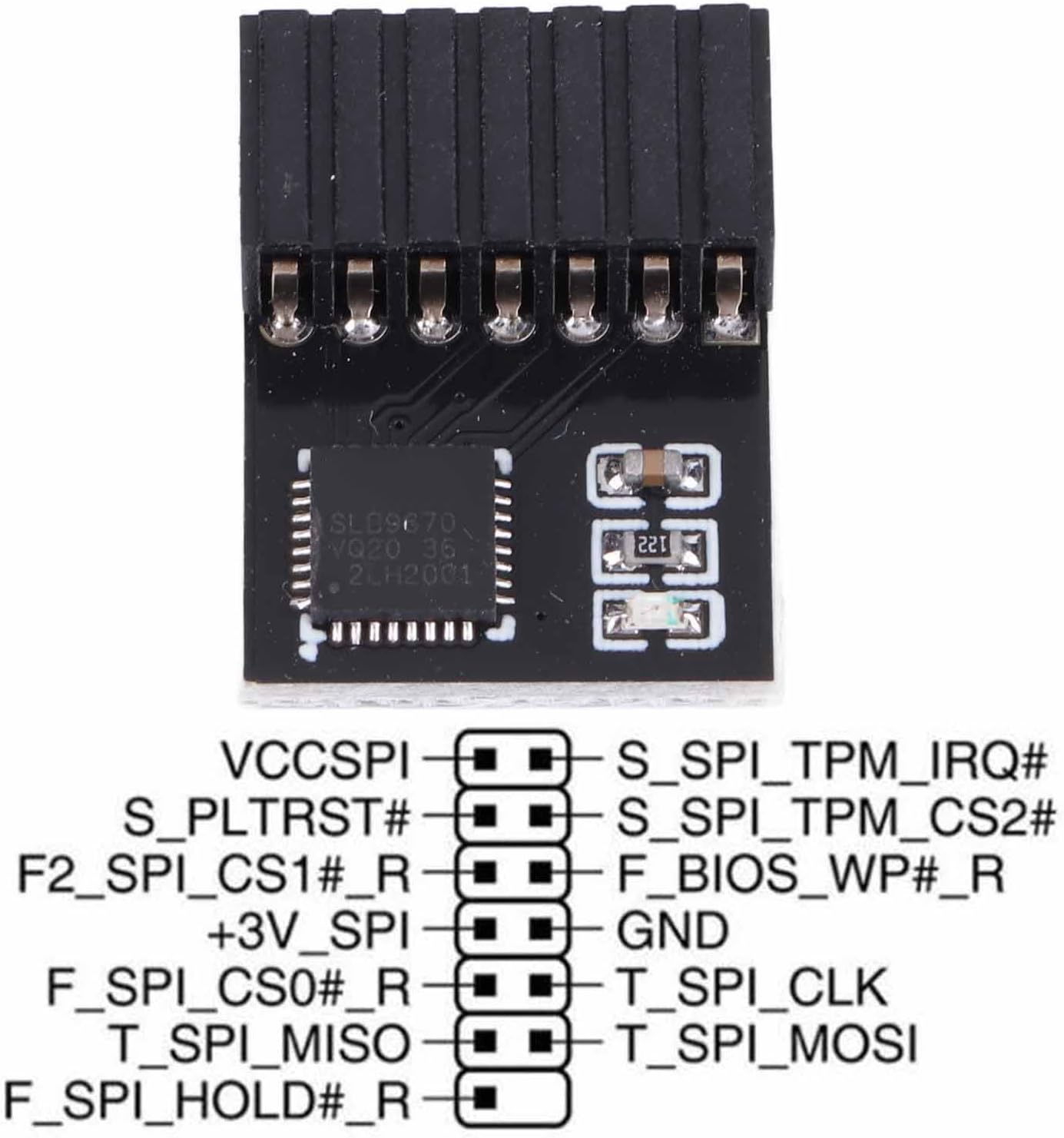 Specification: TPM 2.0 Module, Black PCB 14Pin SPI TPM 2.0 Encryption Security Module Remote Card Replacement TPM Chip Computer Components Fit for ASUS Motherboard Fit for Win11 System