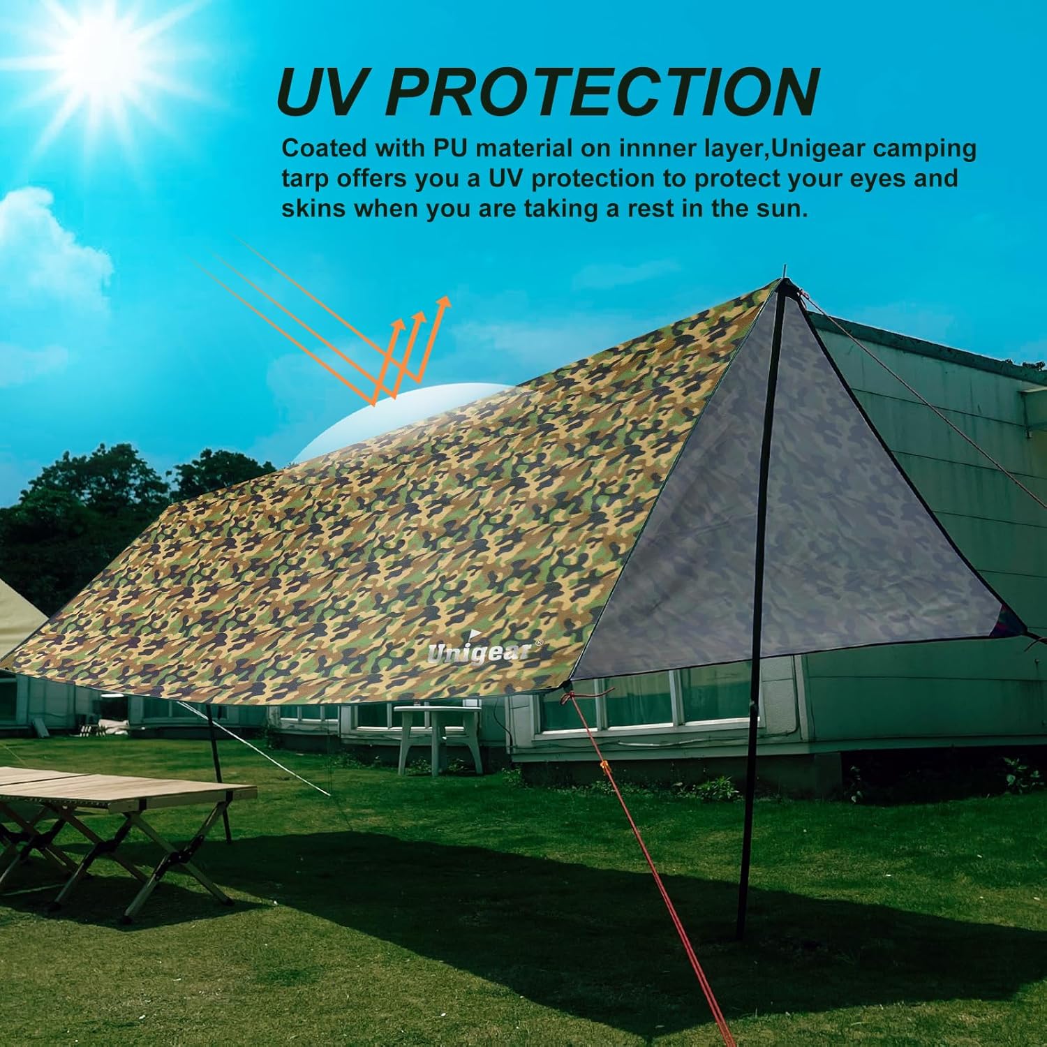 Specification: Unigear Hammock Rain Fly Waterproof Tent Tarp, UV Protection and PU 3000mm Waterproof, Lightweight for Camping, Backpacking and Outdoor Adventure