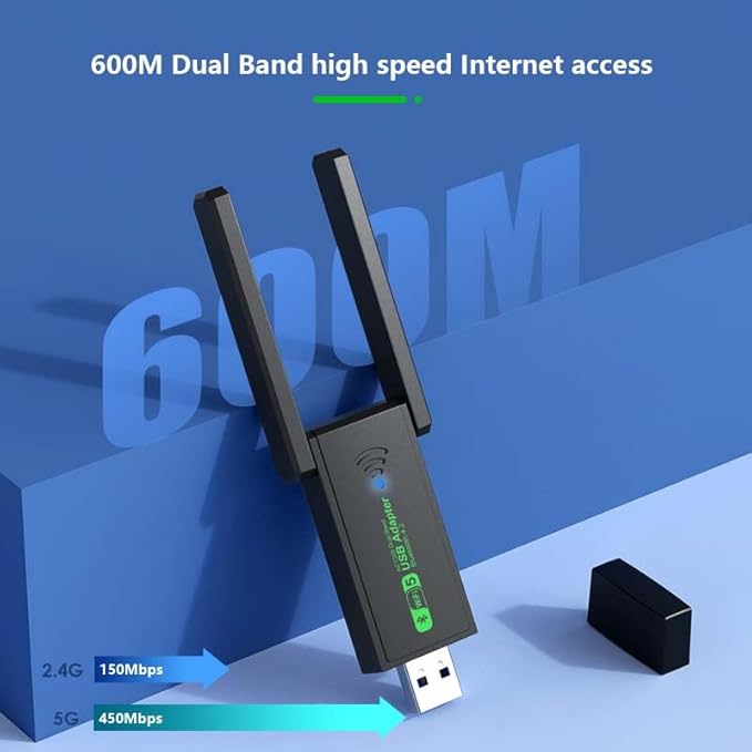 Specification: USB Bluetooth WiFi Adapter,600Mbps WiFi USB 3.0 Dual Band 5G/2.4G, Dual 2dBi Antennas, Supports Windows11/10/8/7, Wireless Adapter for Desktop Computer Network Adapters