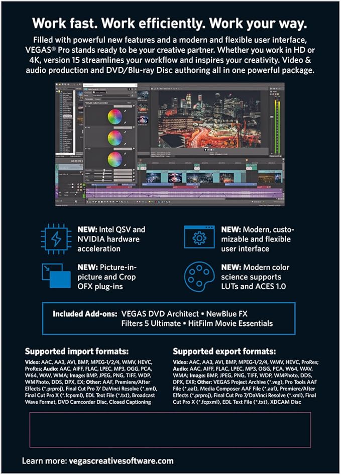 Specification: VEGAS Pro 15 Suite – Professional video & audio editing, disc authoring & high-end plug-ins [Download]