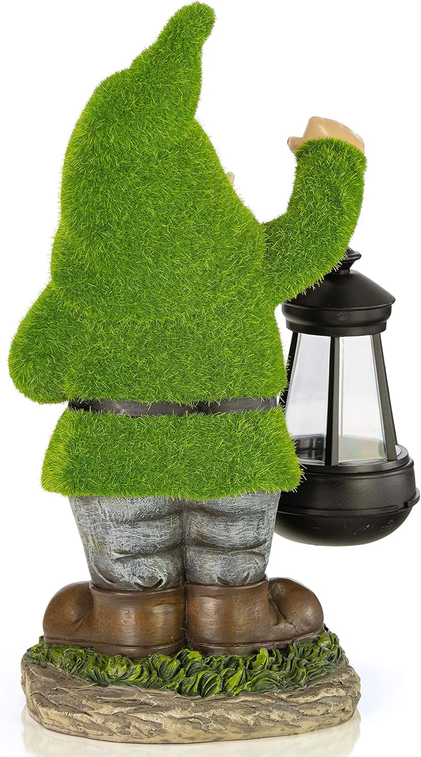 • Polyresin Construction & Green flocking made of nylon fiber. Rechargeable battery included.Our solar gnome garden statue is crafted from durable resin & glass to last year after year.