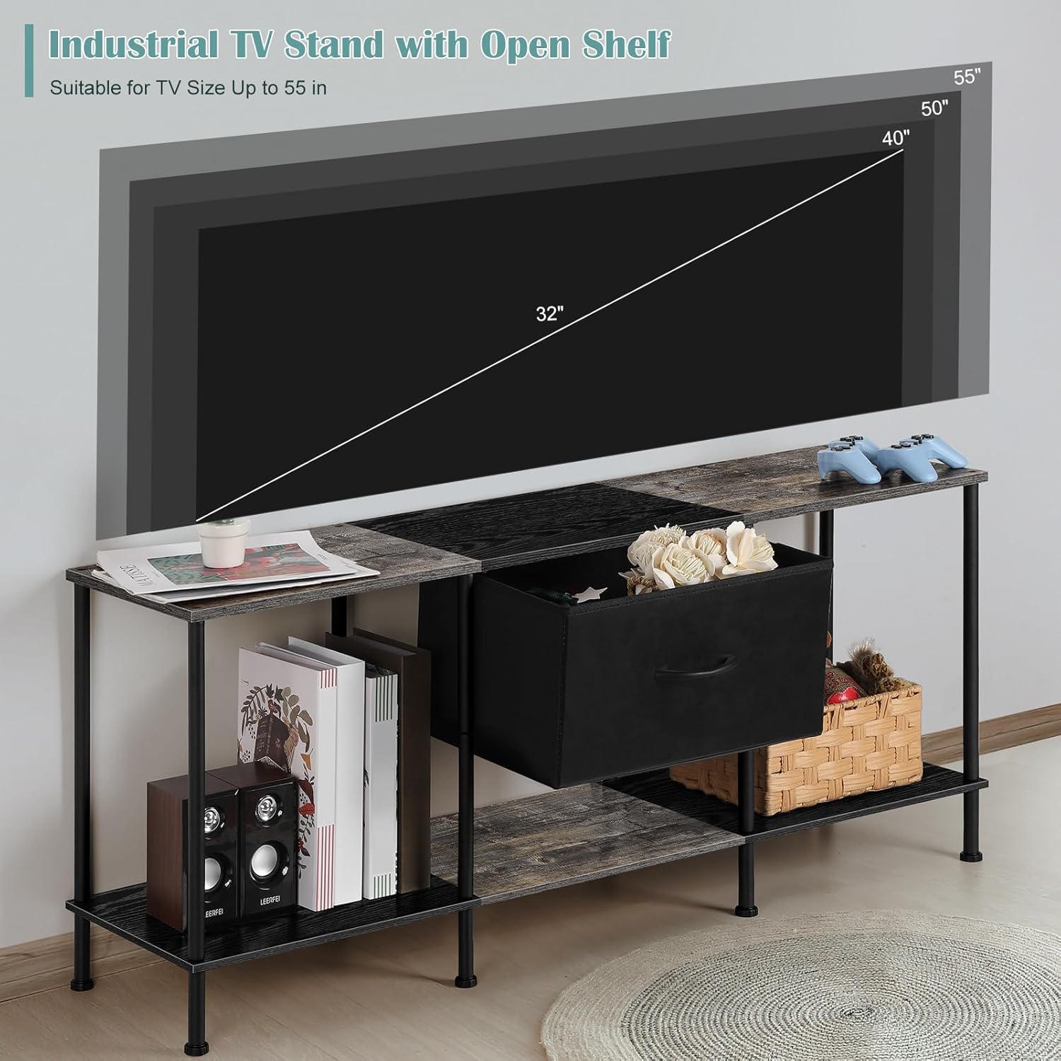 Specification: Vrisa TV Stand for 50/55 inch Television Entertainment Center with Storage Fabric Cabinet and Shelves Modern TV Console for Living Room Bedroom, Black+Grey