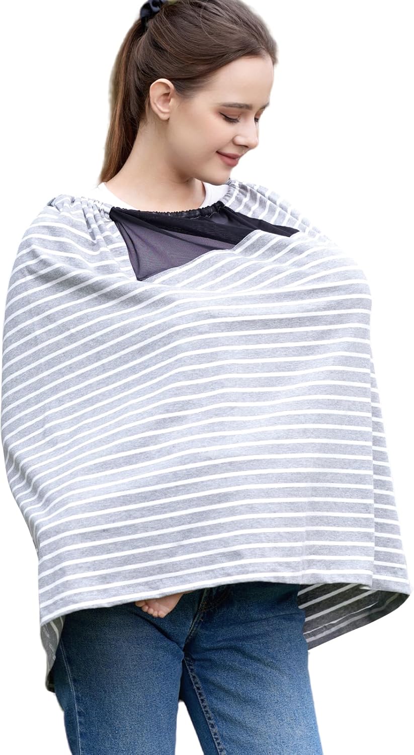Specification: Zdolmy Nursing Covers for Breastfeeding, Privacy Breast Feeding Cover with See-Through Mesh and Adjustable Strap, Breathable Nursing Apron Multi-use Stroller and Car Seat Cover (Grey)